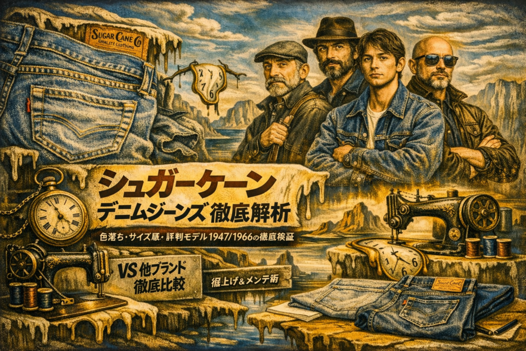 私自身、国産デニムをいろいろ穿いてきましたが、シュガーケーンは良くも悪くも「王道」なブランドです。だからこそ、表面的な評判だけ見ると本質が見えにくい。この記事では、実際に穿く前に知っておきたいリアルな判断材料を、かなり細かく整理します。定番ブランド=無難なのか、それとも地味なのかで迷っている人って結構多いんですよね。
